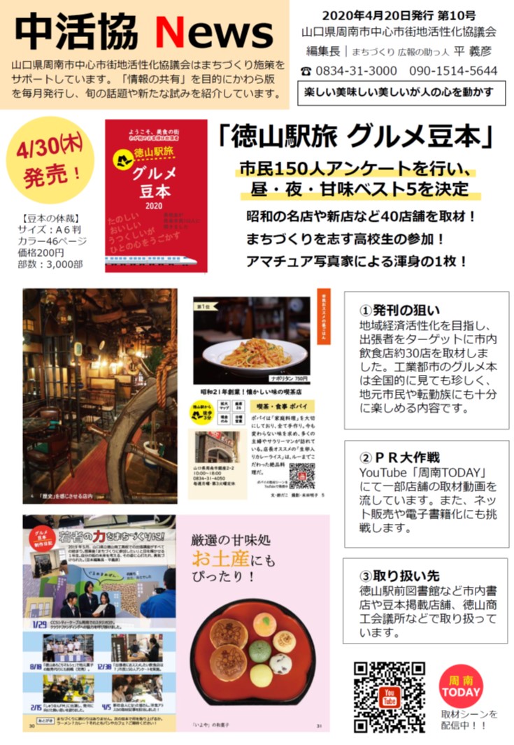 出張者をターゲットに徳山駅前のグルメを紹介する「徳山駅前 グルメ豆本」を4月30日に発刊します。