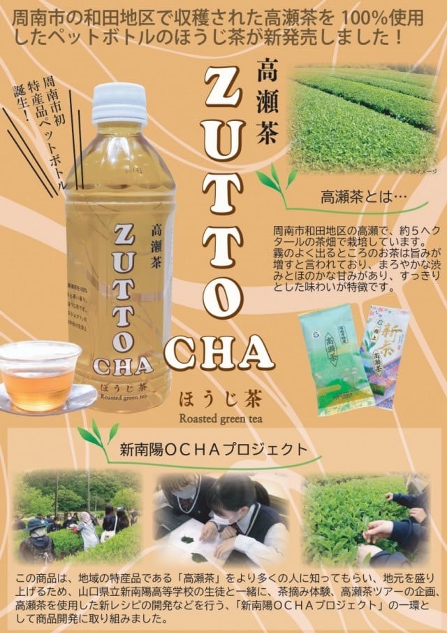 この度、新南陽高校の生徒たちと高瀬茶のペットボトルを商品化いたしました。
