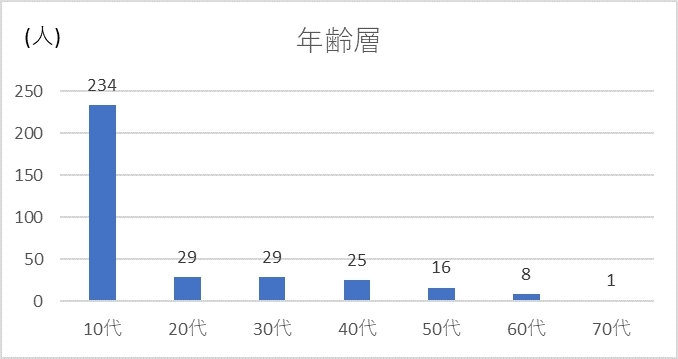 - 10代 234人(69%)