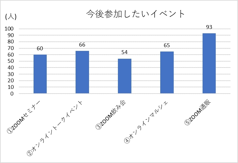 その他のイベントもそれぞれおよそ60名の方が興味を持ってくださっていましたので、今後のイベント企画に、この結果を参考にさせていただきます。
