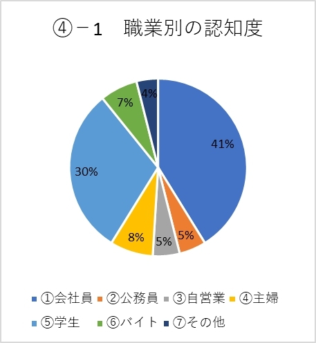 全職種同じ人数ずつ調査すると、会社員以外の、学生や主婦、公務員、アルバイト、自営業の方の認知度の割合は同じくらいになるのではないかと思います。