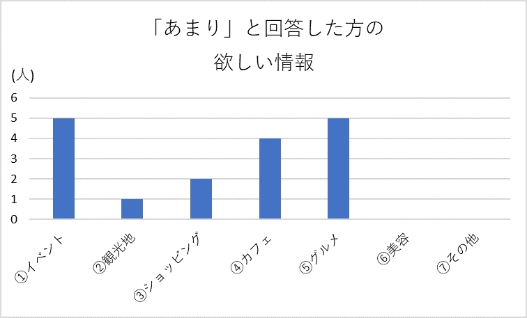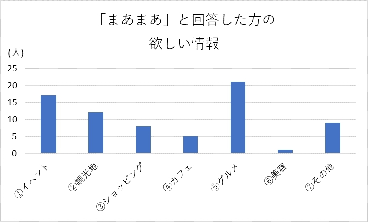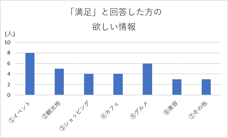 分析の結果、「満足」「まあまあ」「あまり」と、どの回答をした方もグルメ・イベントの情報を求めていることが分かりました。