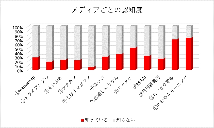 まずは、Tokuyamapをはじめとした地域メディアの認知度調査です。知っているメディアをすべて選んでもらった結果となります。