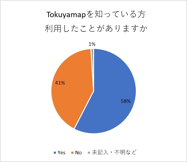 上述のように、Tokuyamapを知っているが利用したことがないという方が41%いらっしゃいます。