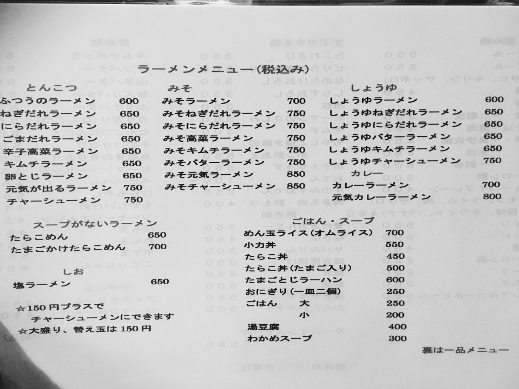 メニューを見て驚くのは、ラーメンの種類の豊富さ。とんこつ、みそ、しょうゆ、はもちろん、イチオシのたまごかけたらこめんなど、ラーメンレパートリーの多さに感激!
