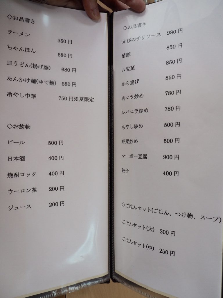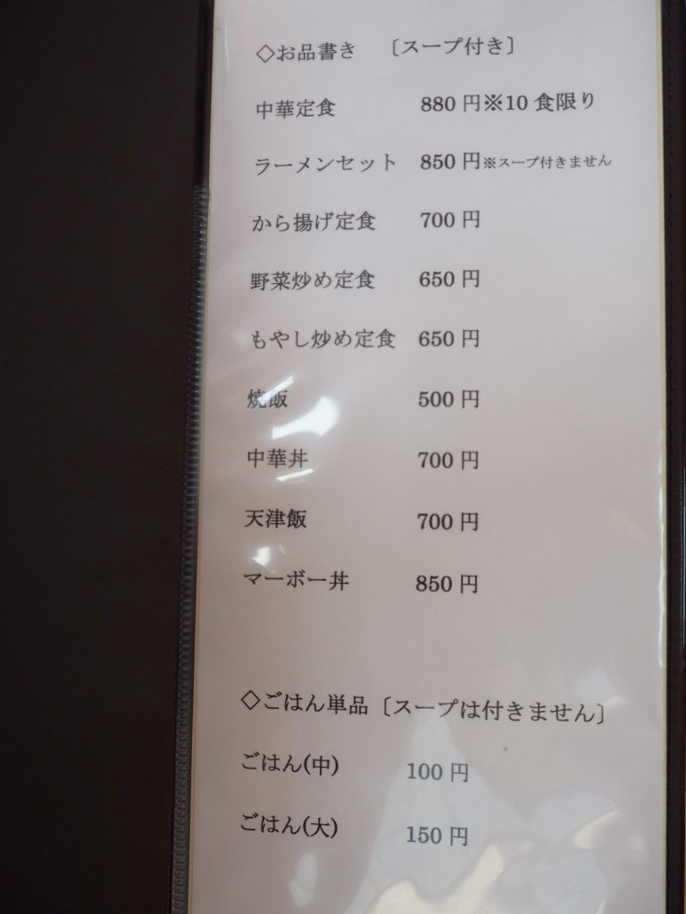 ラーメン、焼飯、レバニラ炒めなどの定番はもちろん、嬉しいのがリーズナブルな定食です。ボリューム満点な限定10食の中華定食880円をはじめ、ラーメンと焼飯がセットになったラーメンセット850円、ご飯がすすむりゅうたんの絶品から揚げ定食700円、特にリーズナブルで大満足な野菜炒め定食650円ともやし炒め定食650円!