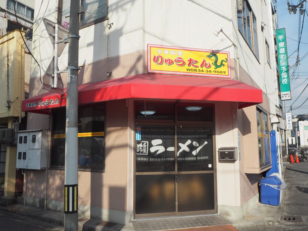 栄町の若葉公園の周りには、サラリーマンには嬉しい、リーズナブルな麵処がたくさんあります。その若葉公園北側の一角にあるのが、こちらの中華料理 りゅうたん。ザ・中華の看板が目を引きます。