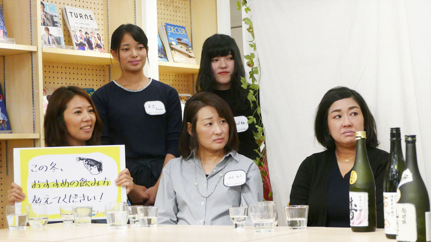 年代も生活スタイルもバラバラな5人。緊張をほぐすため、まずは日本酒で乾杯!
