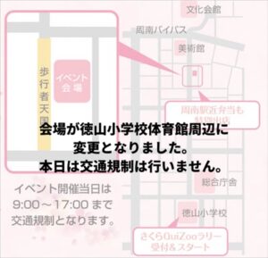 例年のSAKURAアーチフェスタ開催場所ではないので、ご来場の際はご注意ください。
