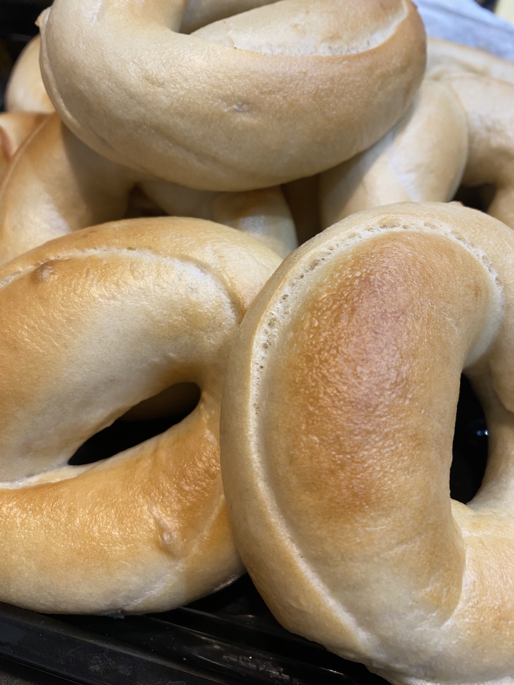 いろんな種類のパンはありませんが、パン屋さんではないからこそできる、モチモチのベーグルを店舗で生地を焼き、しっかり茹でてご用意しております。