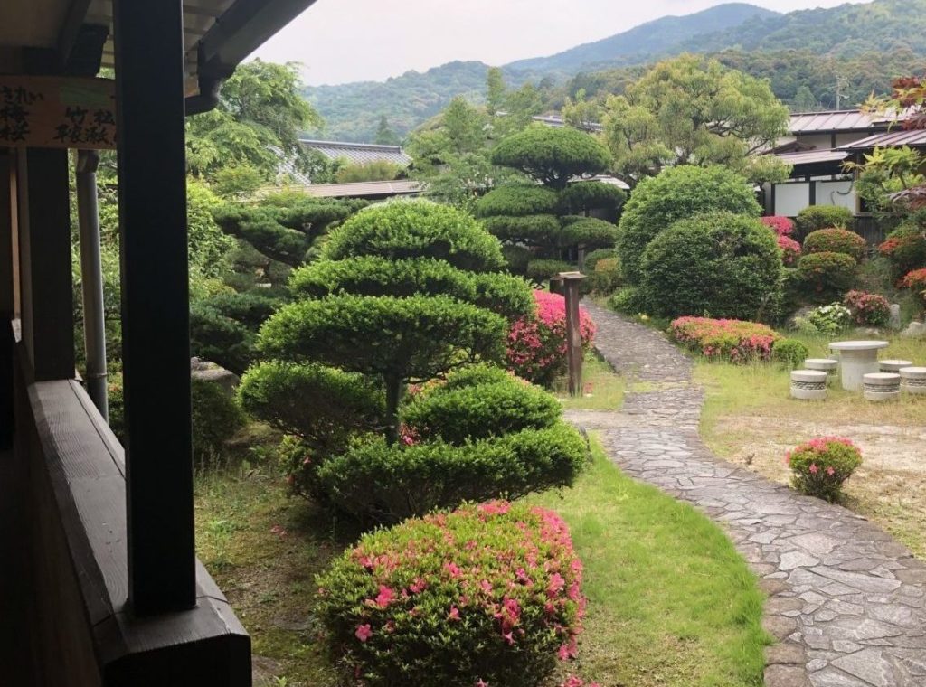 広い中庭で鯉や橋など、とても雅で優雅な風景です。