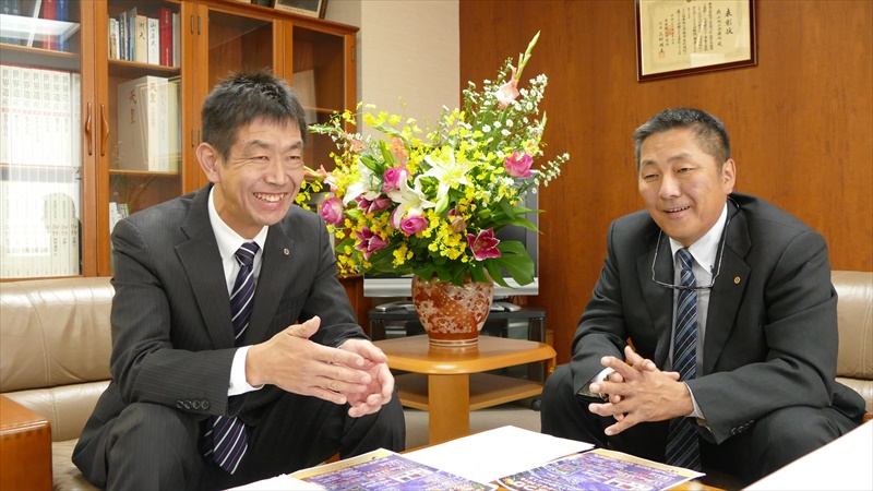 お話しを伺ったのは、ツリーまつり実行委員会委員長で徳山商工会議所副会頭の原田さん、青年部青友会会長の岡さん、副会長の廣澤さんです。