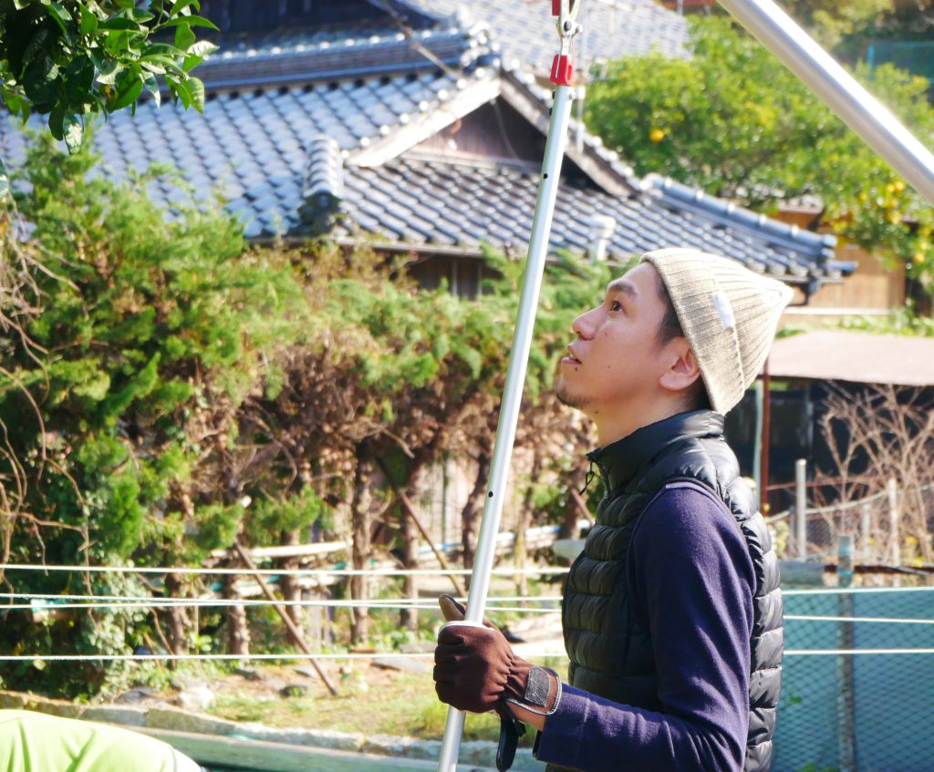 デザイナーの松田さん。すだいだいの収穫も手伝ってくれました。