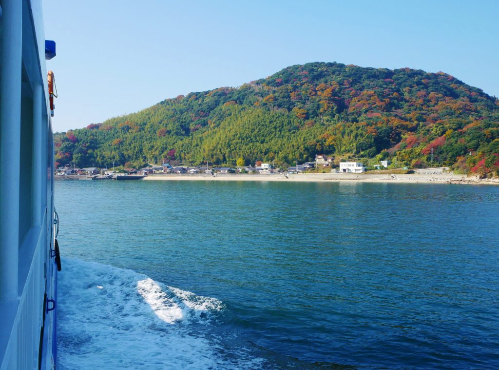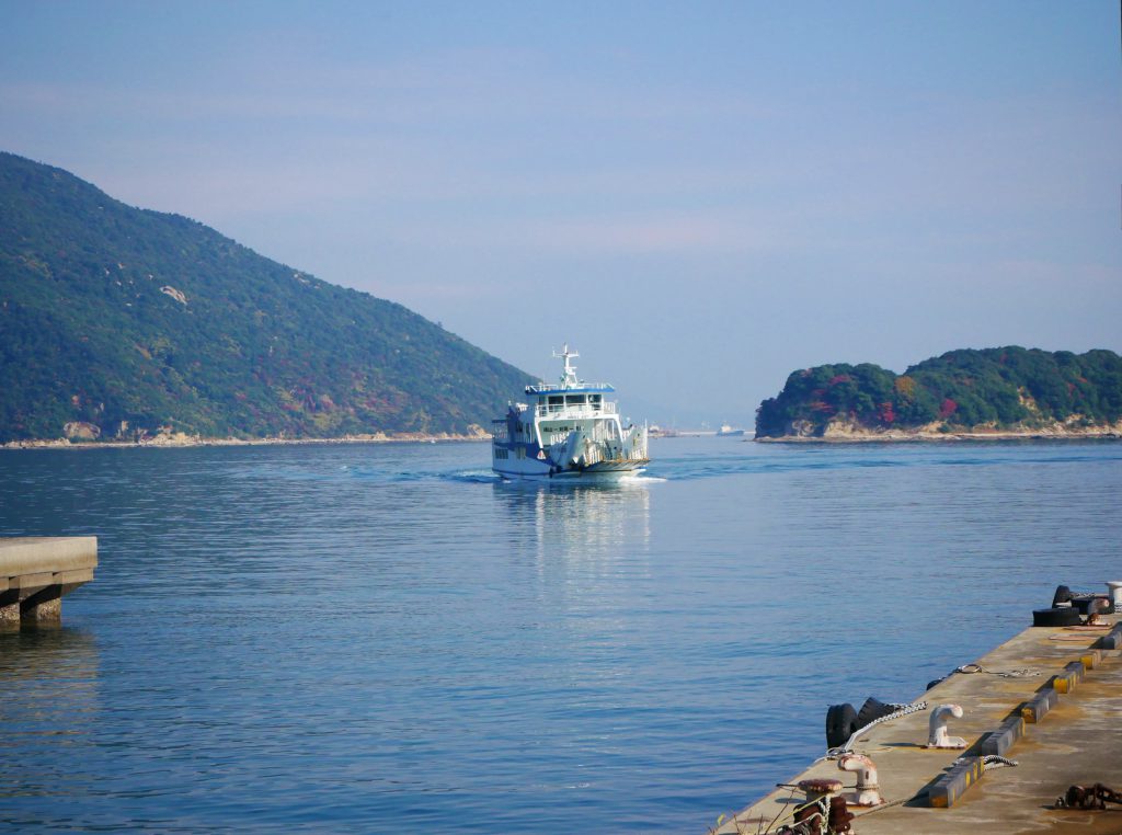 すだいだいの収穫に大津島へ行った日は11月後半とは思えない暖かい小春日和。徳山港からフェリーで40分くらいで大津島の刈尾港に到着。すだいだいを持って帰るために車が必要なのでフェリーの旅となりましたが、高速船だと20分弱くらいだそう。