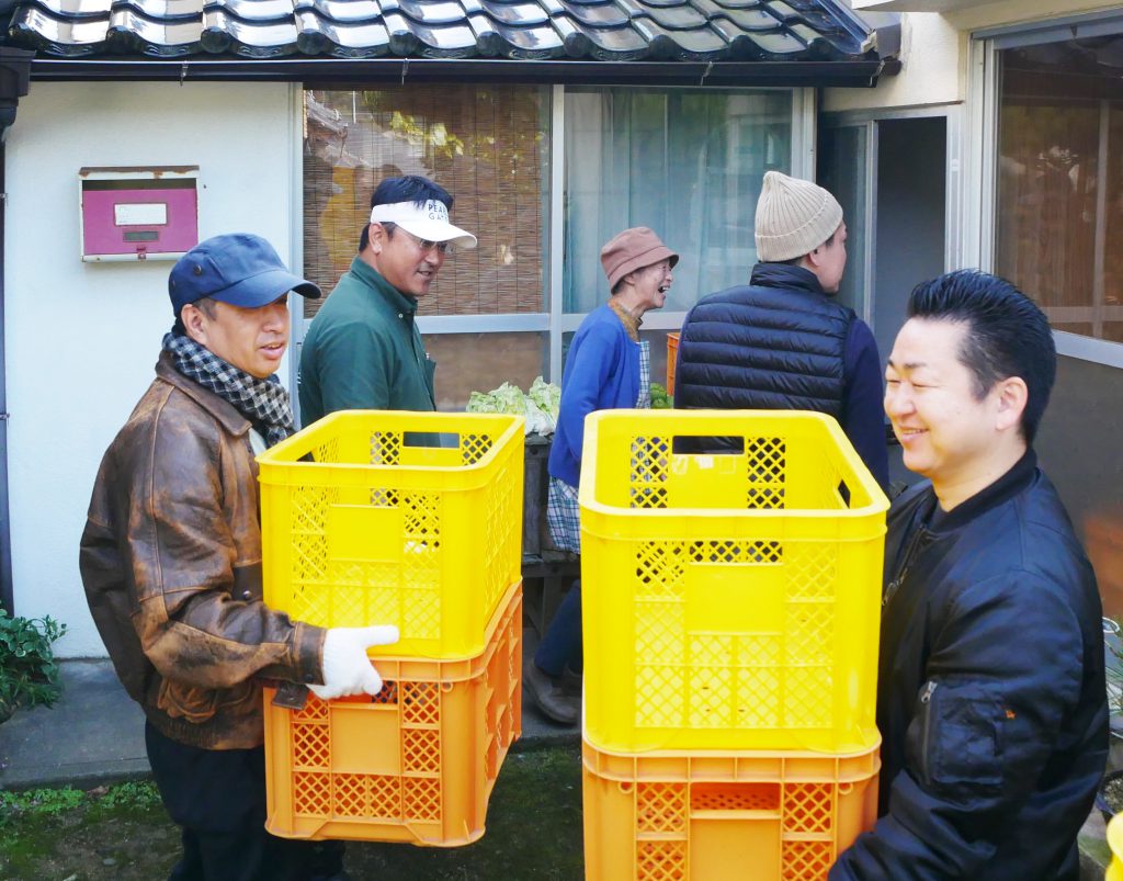 今回すだいだいを提供してくださる安立さんにまずごあいさつ。奥の笑顔のすてきな女性が奥様です。料飲組合のみなさんは夜もお店がある方ばかりですが、今日は早起きでがんばってます!