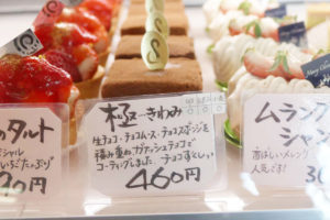 ショーケースに並ぶケーキは、冷蔵庫で2日ほどが賞味期限。