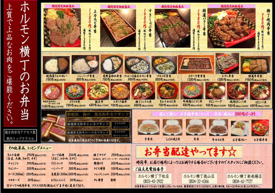 ※徳山店はランチ営業しておりません。お昼のお弁当をご注文の方は、新南陽店でお申し込みください!