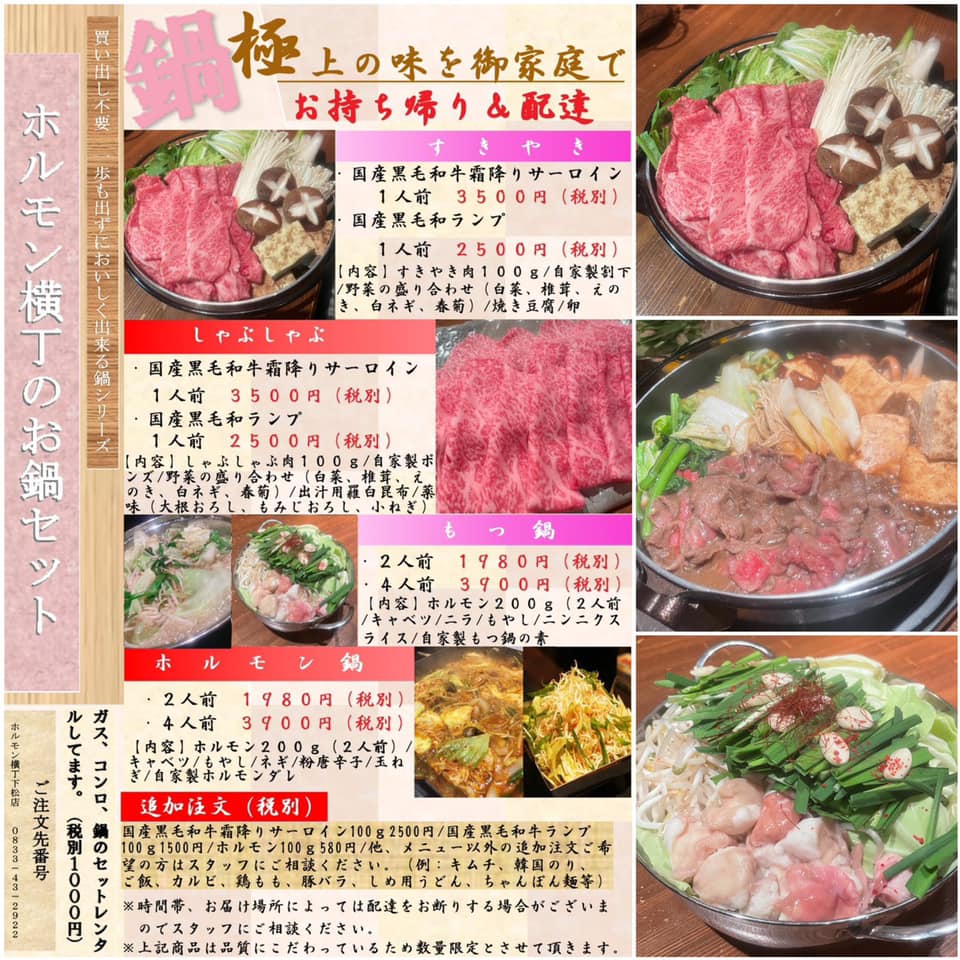 ホルモン横丁 新南陽店・徳山店はテイクアウトを行っています。