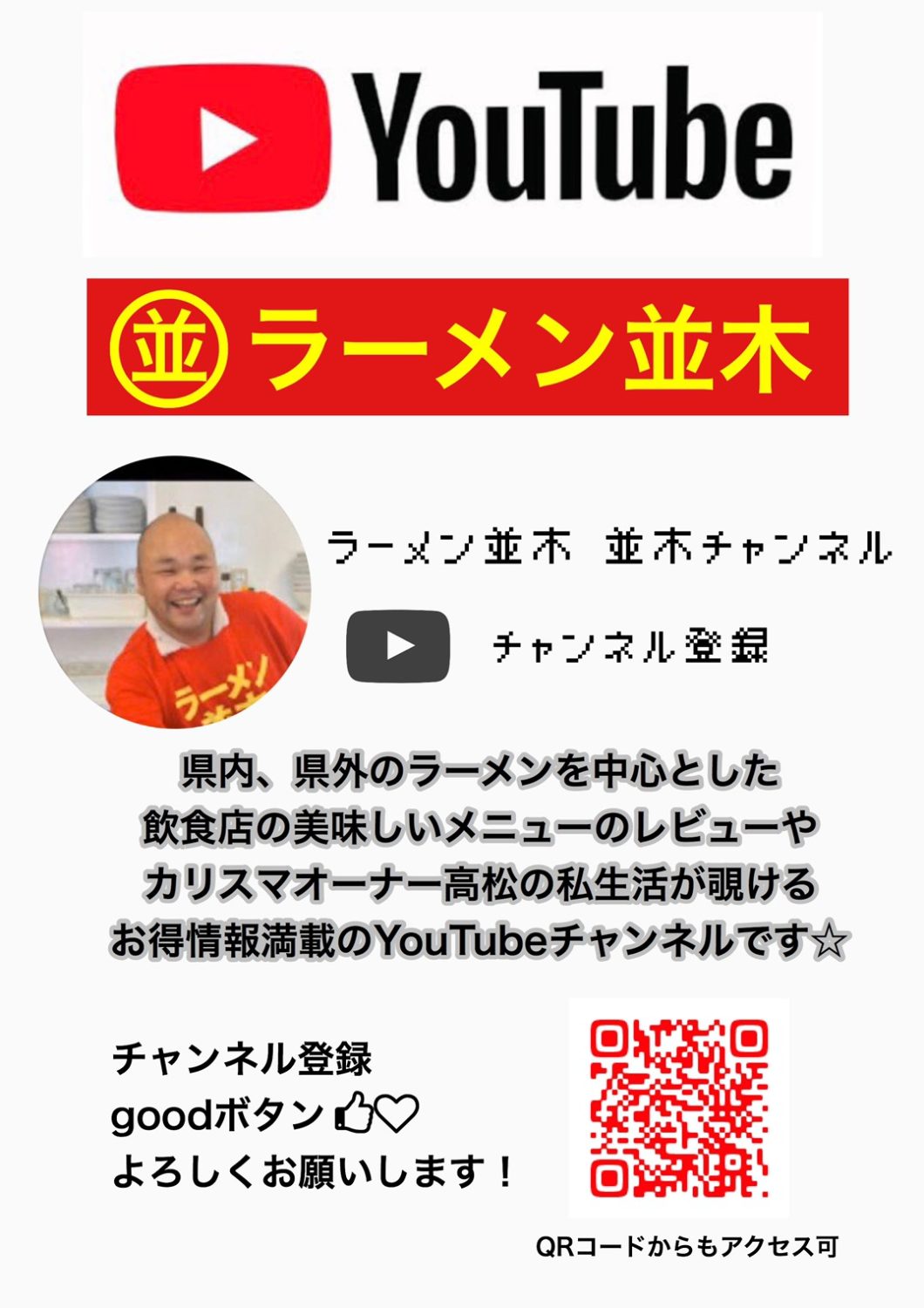 「YouTubeラーメン並木並木チャンネル」も始めました。