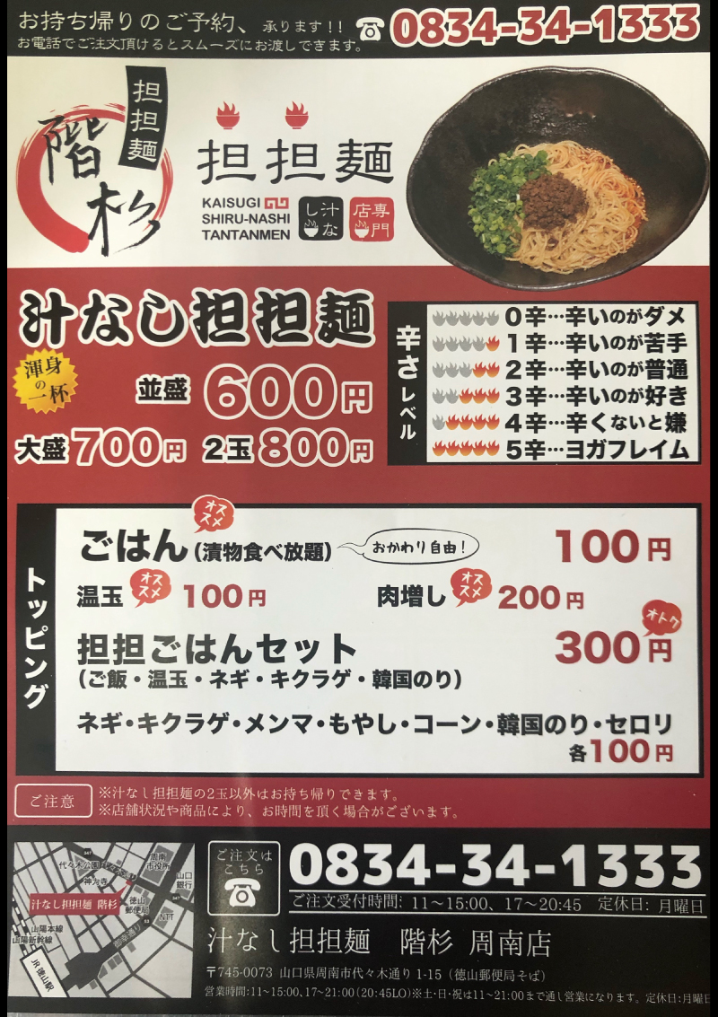 担担ごはんセット(ごはん、温玉+お好きなトッピング3種):300円ねぎ・キクラゲ・メンマ・もやし・コーン・韓国のり・セロリ・チーズ・茹でキャベツ:各100円