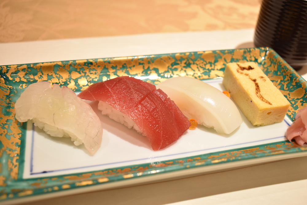 御祝寿司:紅白握り寿司(白身・本鯛・烏賊・いくら・といしの卵焼き)/御吸物:赤出汁