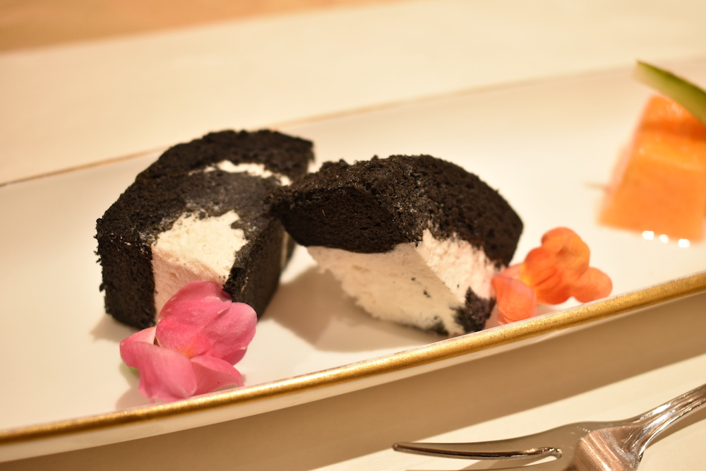 黒色のロールケーキは、醤油と竹炭が入っているので黒色になっています。