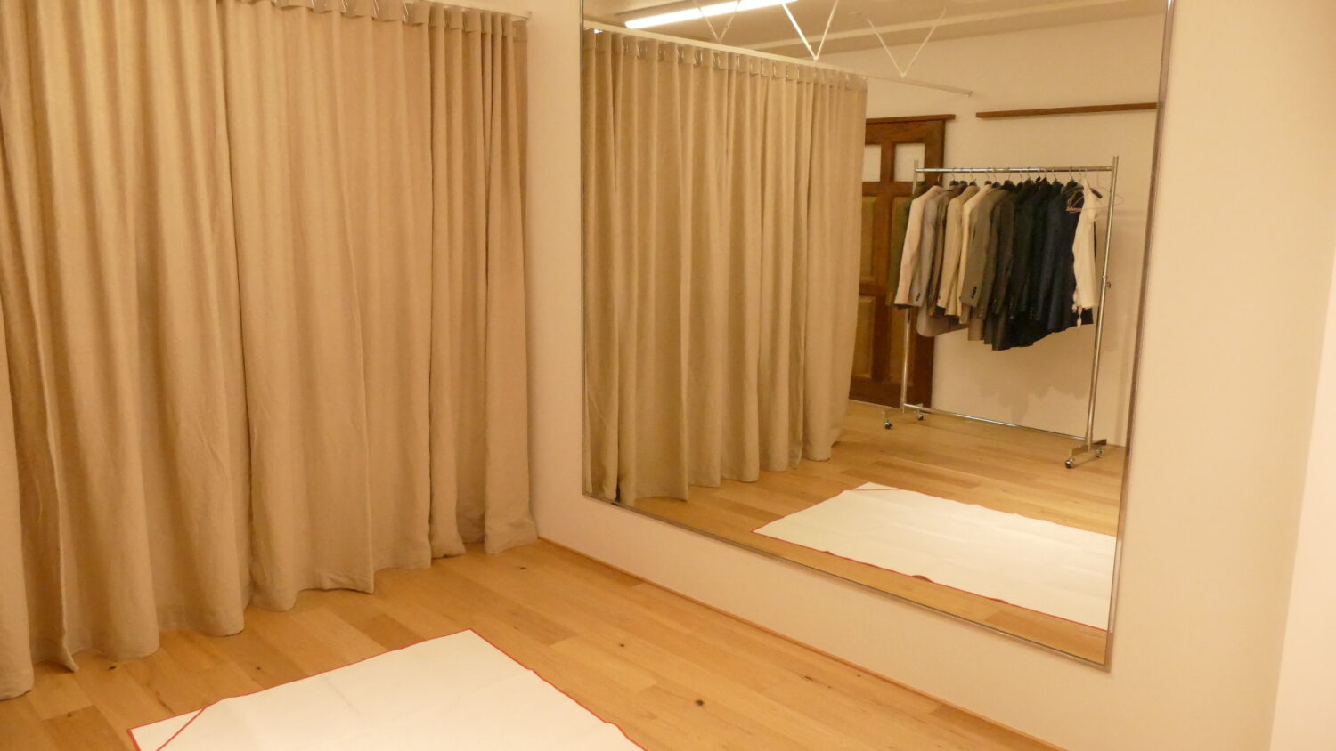 シンプルな木製の作りの試着室は、とても落ち着く空間になっています。