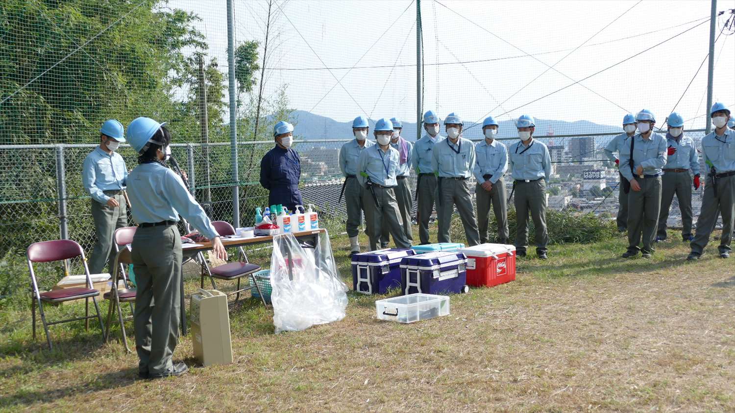 金剛山の公園に集まった、20名ほどの社員の方々。