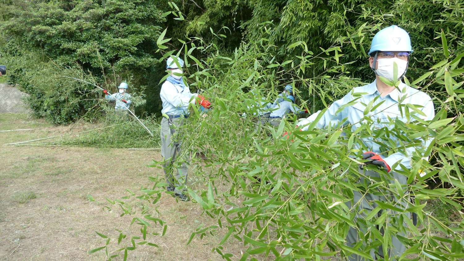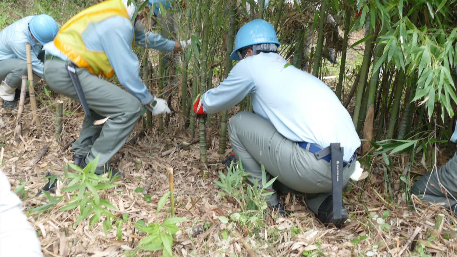 「ご安全に」の挨拶とともに始まった、竹の伐採作業。