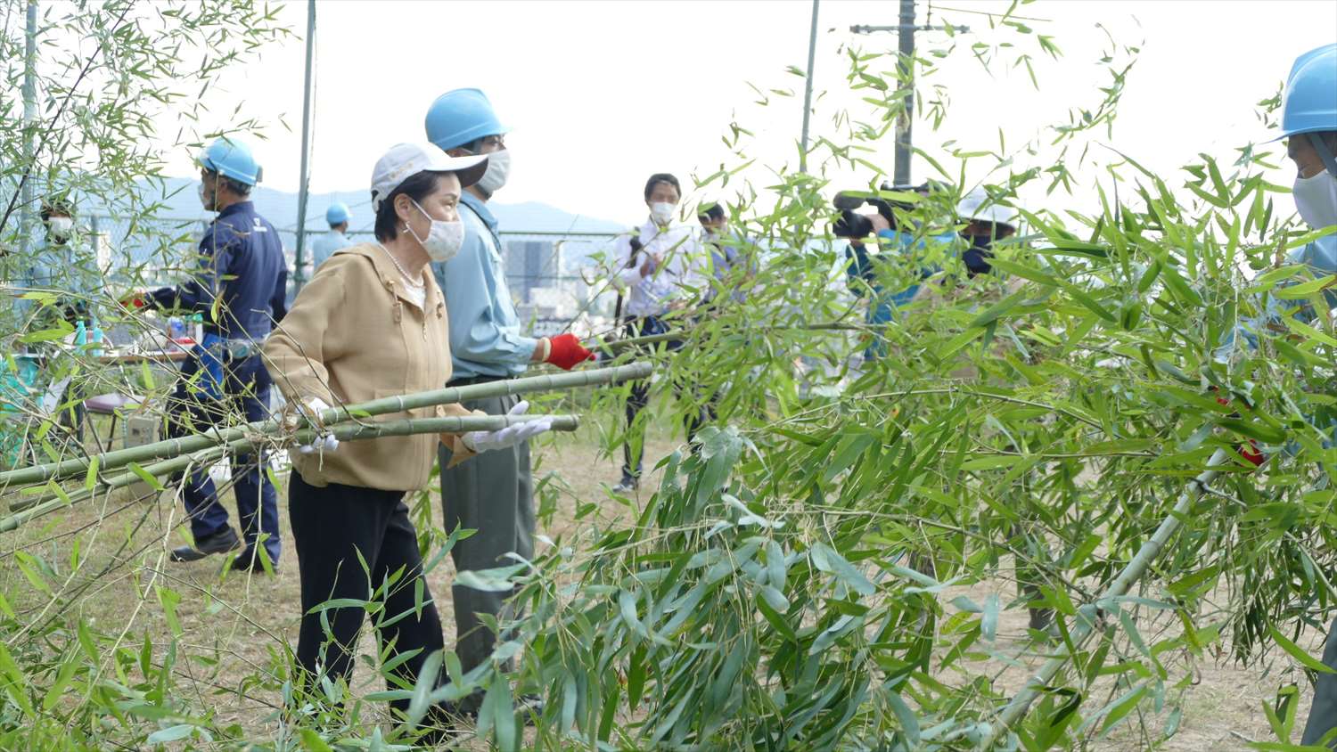 お手伝いをしにいらっしゃった周南市長も軽々と竹を持ち上げます。