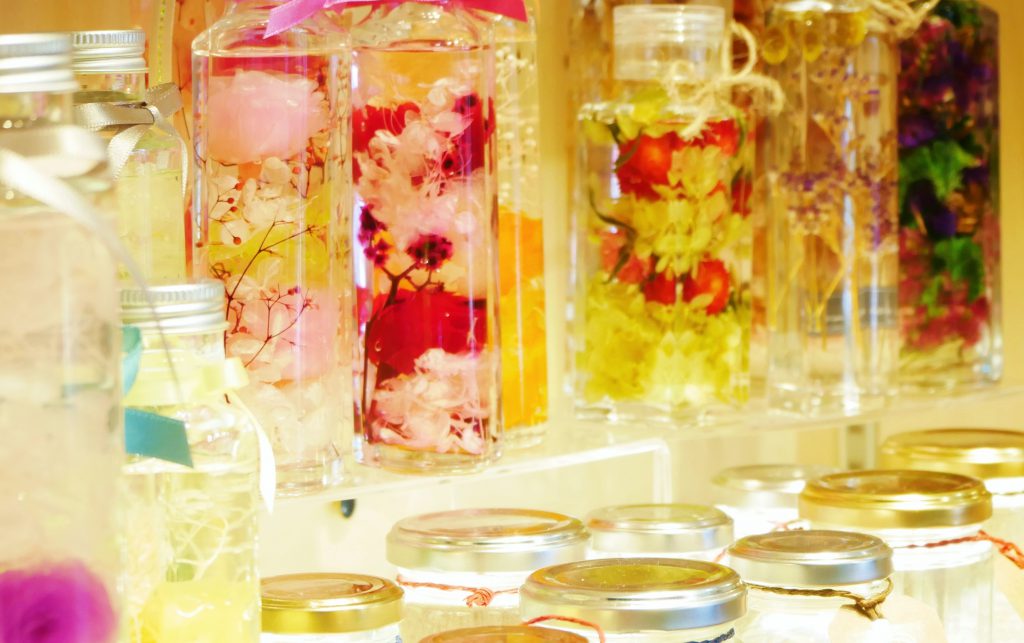 今人気のバーバリウムも。色鮮やかなドライフラワーにもうっとり。