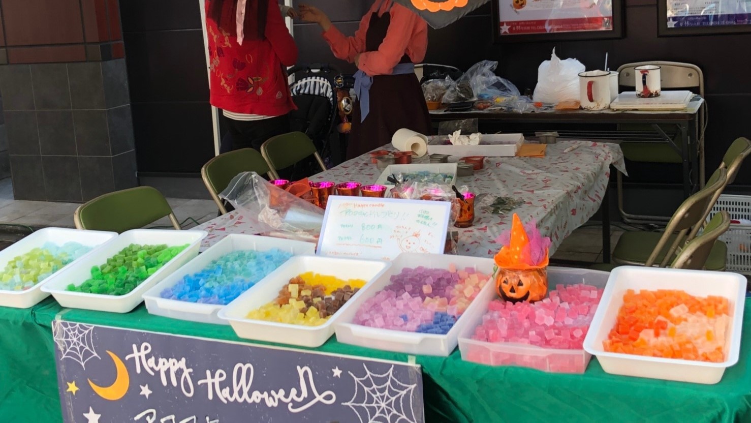 アロマキャンドルの手作り体験ブースなんかもあり、大人も楽しめる空間です。