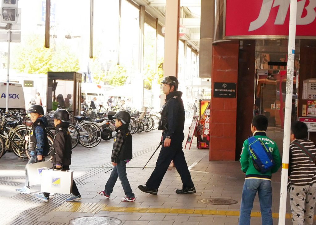 街の警備だって、子どもたちで行います。不審者がいないかチェック。