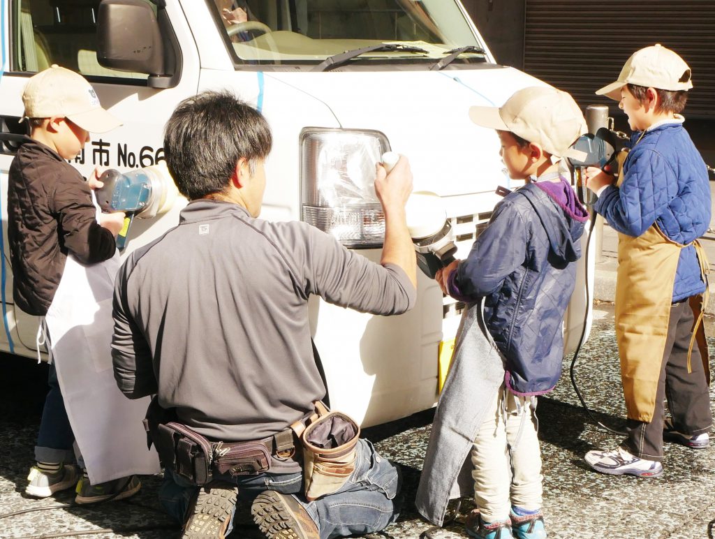 車の磨き屋から、フライドポテトの販売、石の加工も体験。街の警備も子どもたちでやります!