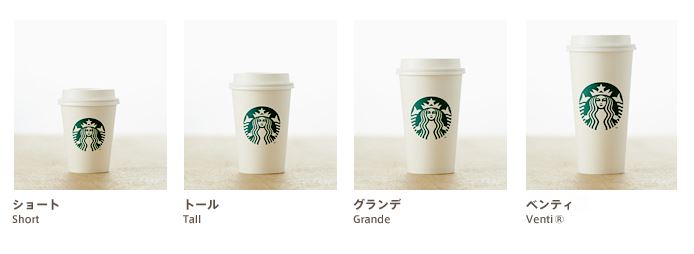 スターバックスといえばコレ、選べるカップサイズ4種類、呼び慣れないサイズ名称に最初は苦戦するものです。