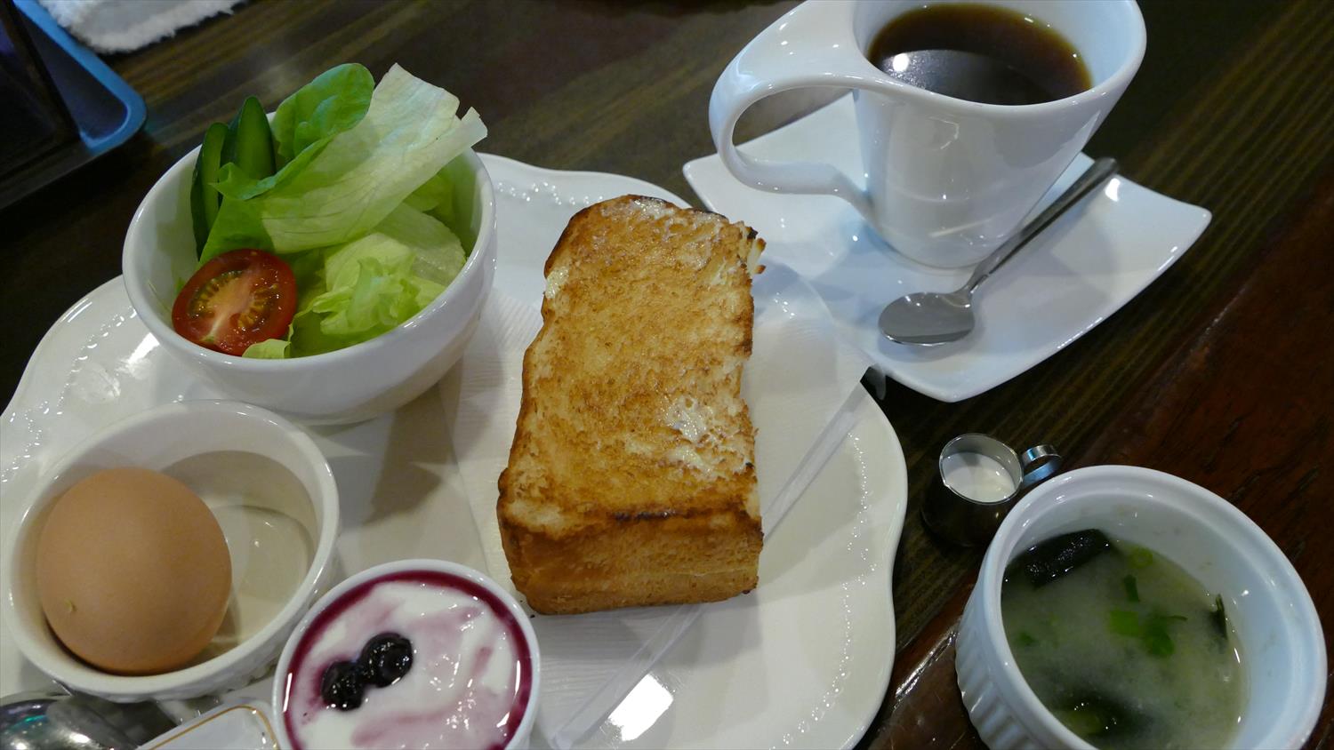 さくふわの厚切りトーストに、オーナーのお母様お手製のお味噌汁。