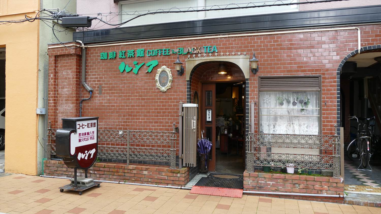 れんが造りの外観が印象的な珈琲紅茶館ルシア。