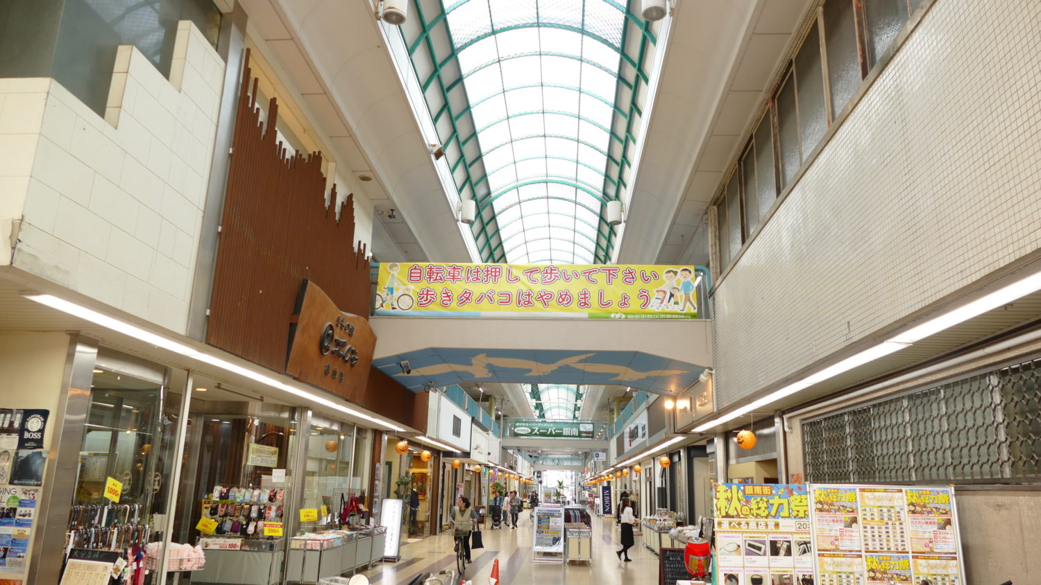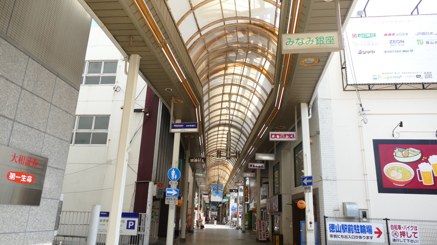 山口県周南市、徳山駅のみゆき口から右側に広がる商店街エリア。