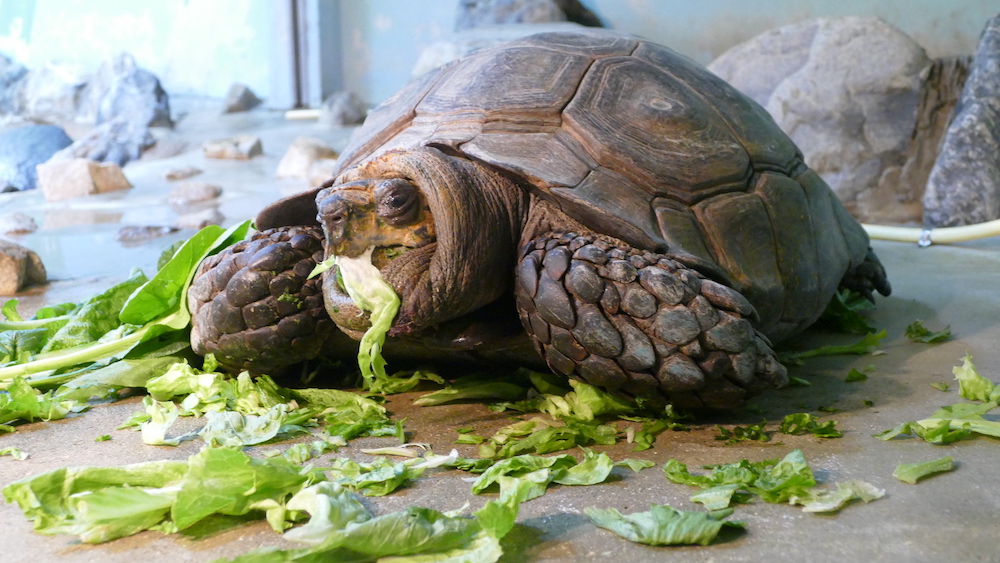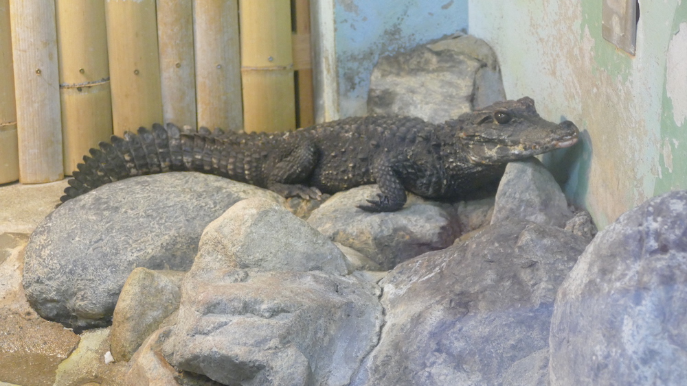現在ここにはインドホシガメ・ムツアシガメ・ニシアフリカコガタワニ・ビントロングが展示されています。