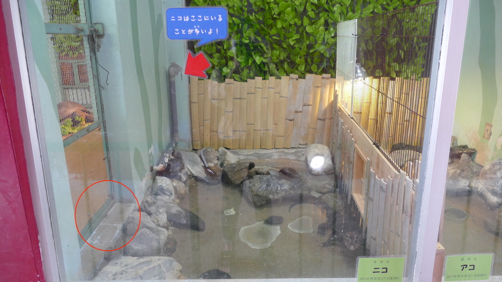 取材時は水の中にいましたが、ニコは大体赤丸辺りにいます。[/voice]