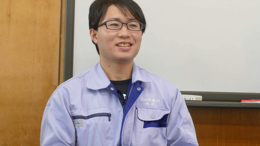 [voice icon=”https://www.tokuyamap.com/wp-content/uploads/2019/03/tokuyamakosan-13.jpg” name=”縄田さん” type=”l”]下松工業高等学校を卒業後、製造業に携わりたいと思っていて徳山興産に入社しました。[/voice]