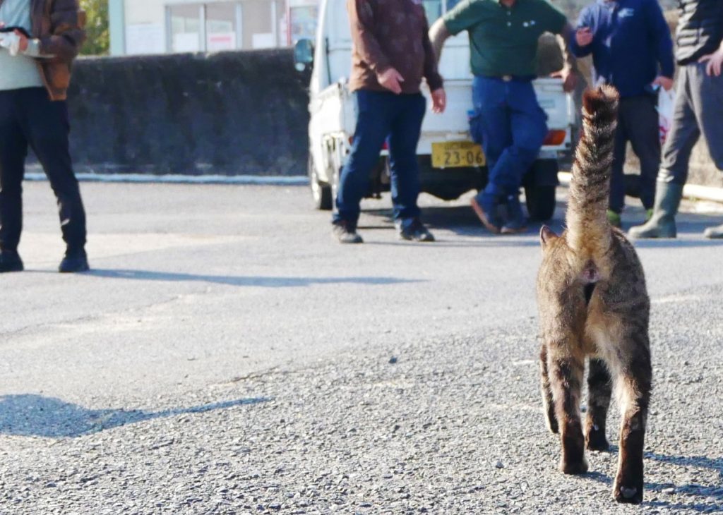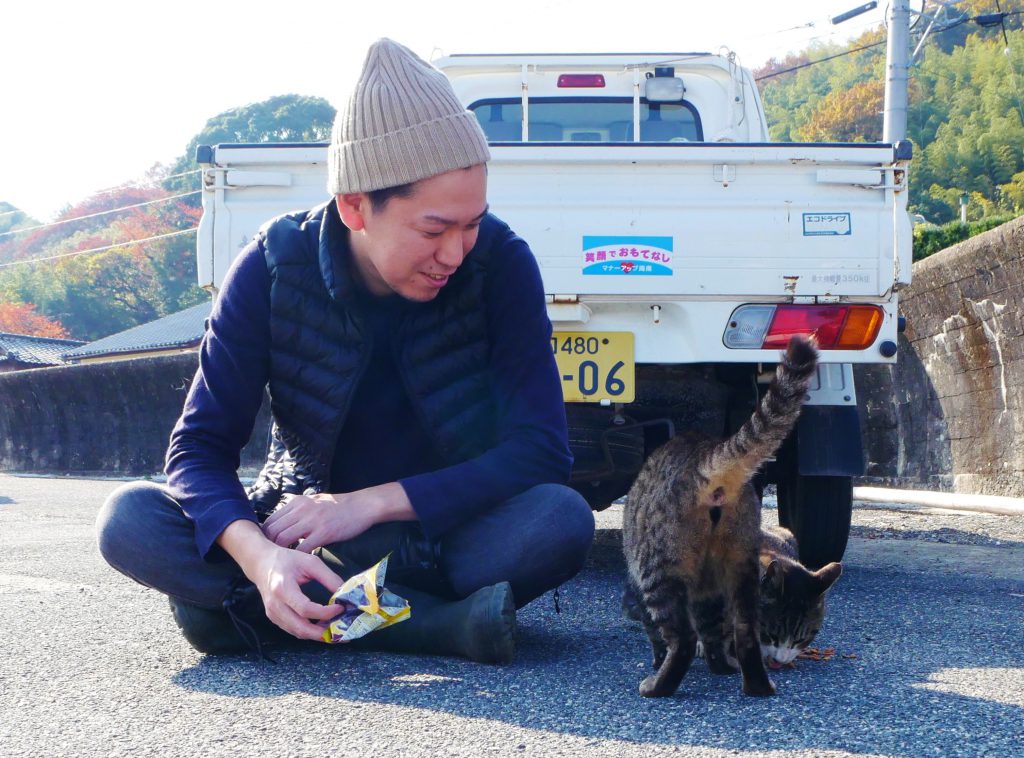 「刈尾は猫が減ってきてるんですよ。あんまり餌をあげる人がいないから」とおっしゃるのは、東京から大津島に移り住んだデザイナーの松田さん。いつ猫たちに会ってもいいようにと、キャットフードを携帯しているのだかとか!猫たちにとっては優しいお父さんがわりといったところでしょうか。