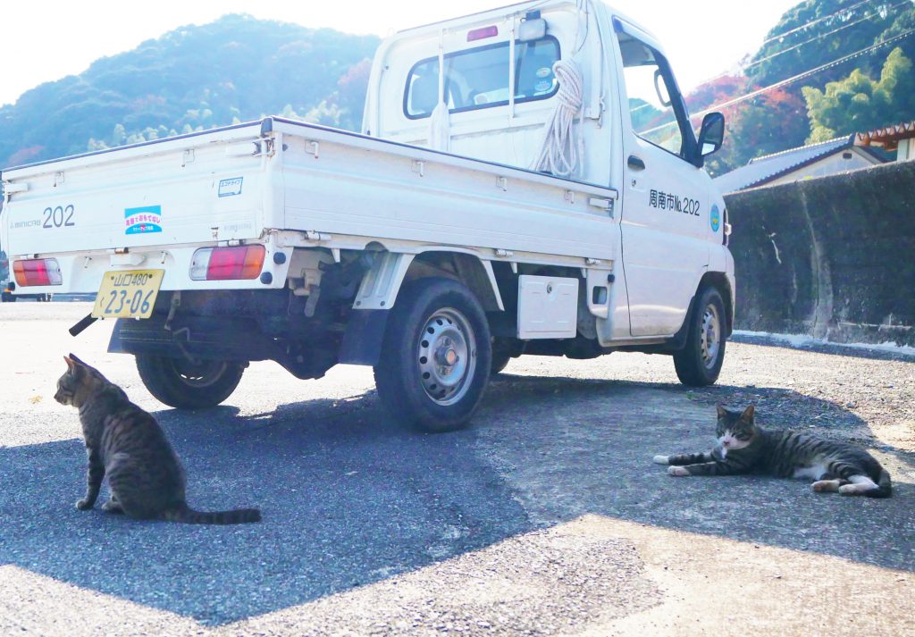 世はまさに空前の猫ブーム。周南市のお隣、下松市にある笠戸島も猫の多い島としてかの有名な猫番組にも登場しましたが、笠戸島と徳山湾を挟んで向かい合い大津島にももちろん、かわいい猫たちが暮らしていました。