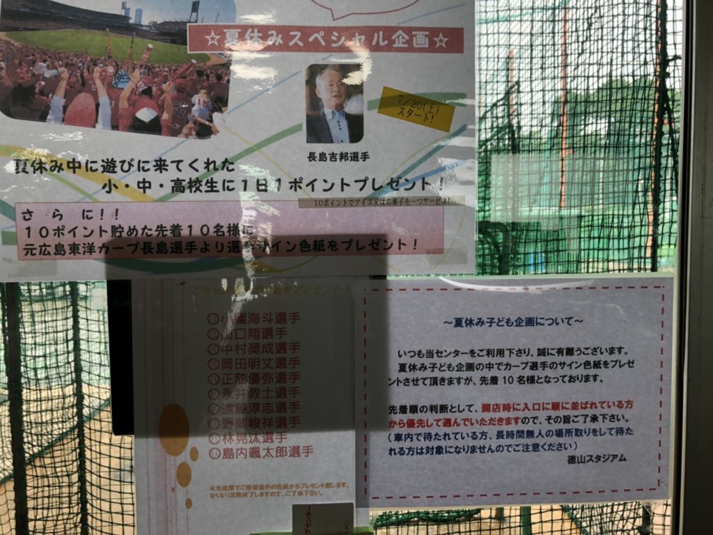 カープの選手のサインがもらえます!先着なので、欲しい人は今すぐ徳山スタジアムさんへ!