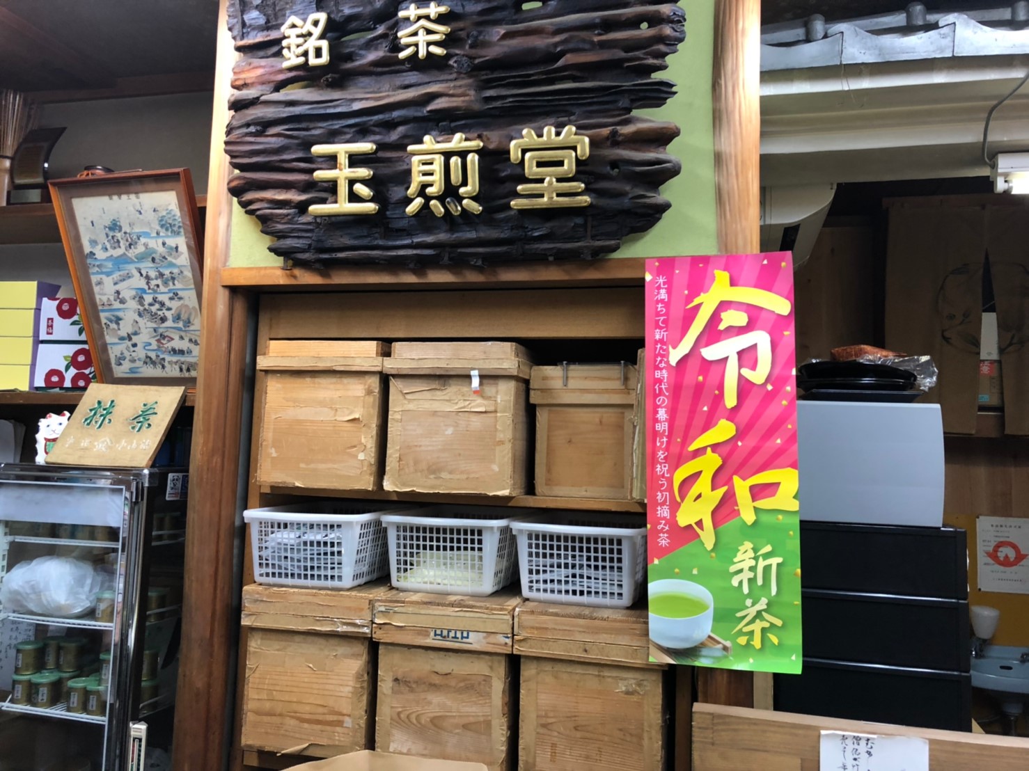 つぎに訪れたのは、河村玉煎堂さん。新茶に「令和」の文字が光ります。