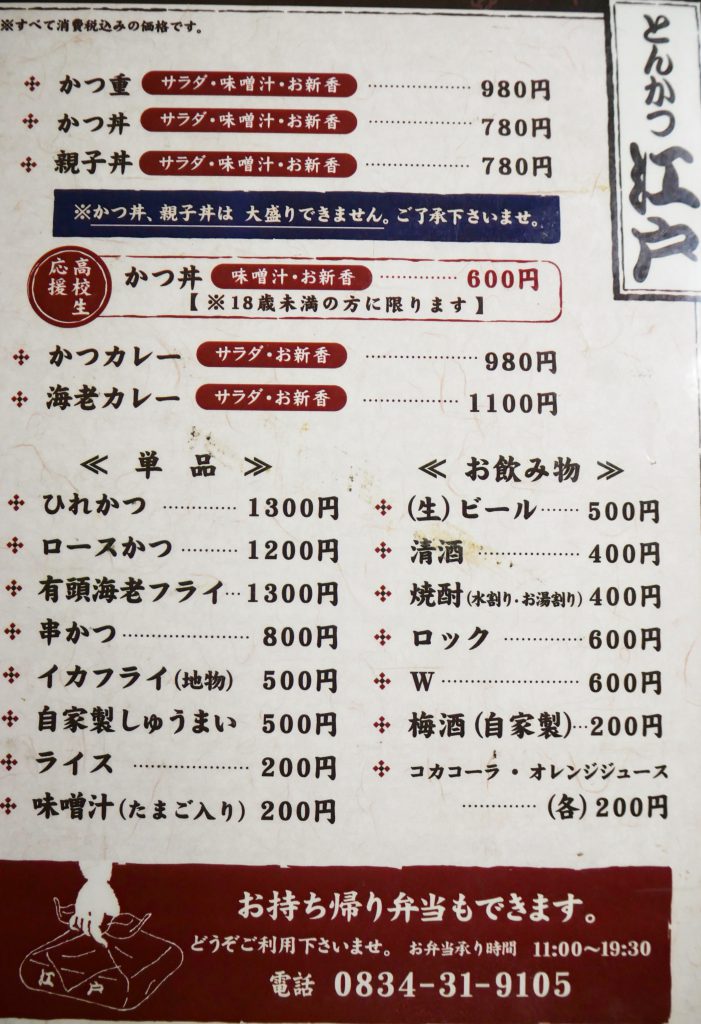 新宿の老舗とんかつ店で働いていたご主人。だからお店の名前には江戸の名前が入っているのです。東京のお店の味を徳山でも味わえるよう、お味噌汁にはこのあたりでは珍しく信州みそが使われています。