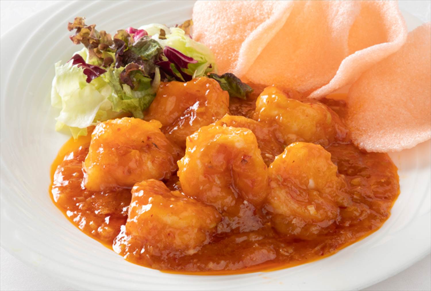 [voice icon=”https://www.tokuyamap.com/wp-content/uploads/2021/03/S__156590082-1.jpg” name=”杉本エリアマネージャー” type=”l”]ほどよい辛さの大海老のチリソース。お子様にも人気の一品です。[/voice]