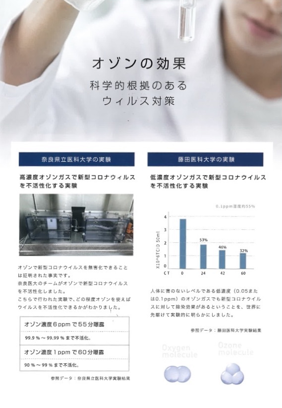 奈良県立医科大学・藤田医科大学の実験によりがオゾンで新型コロナウイルスを不活性化することが証明されました。