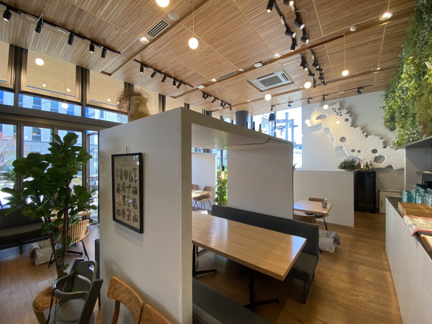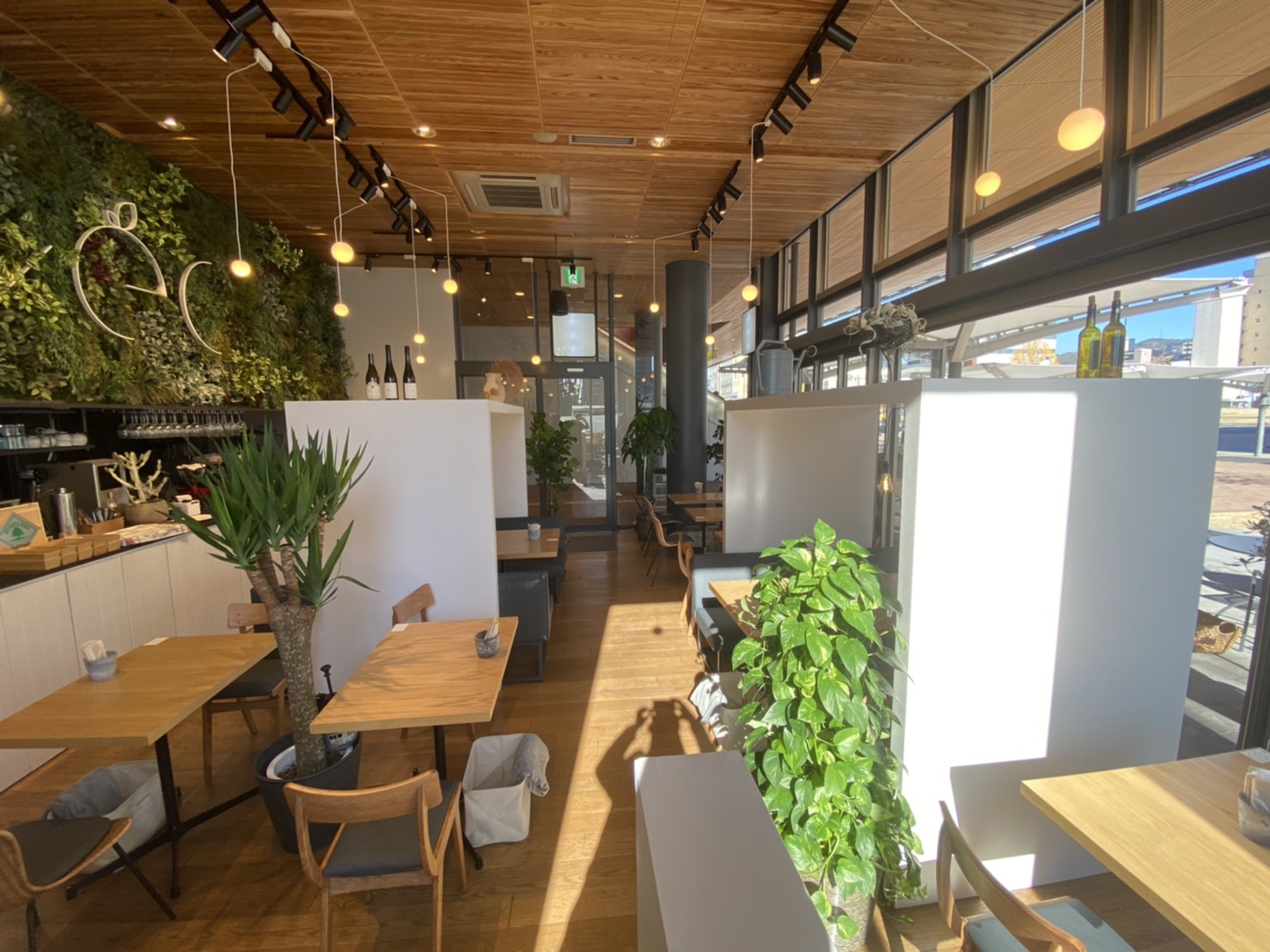 緑がいっぱいで『自然』にこだわっているのが伝わる店内は、ガラス張りになっているのでとても開放感があります。
