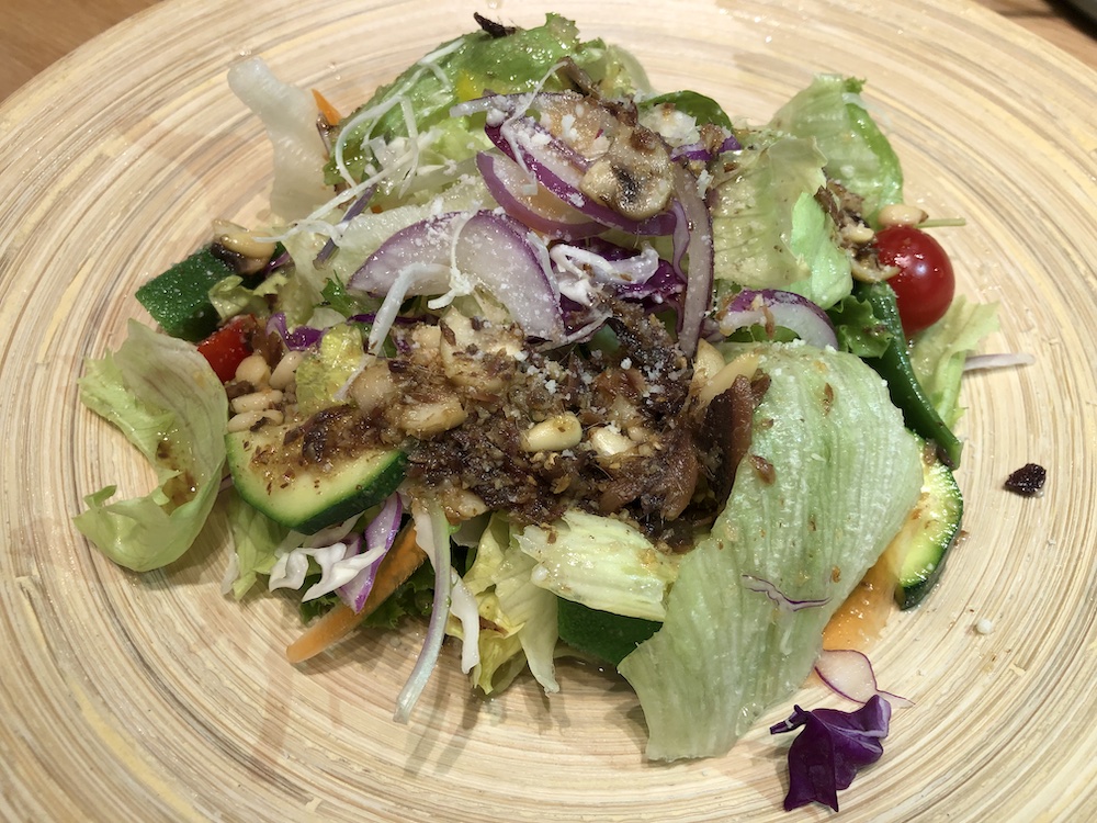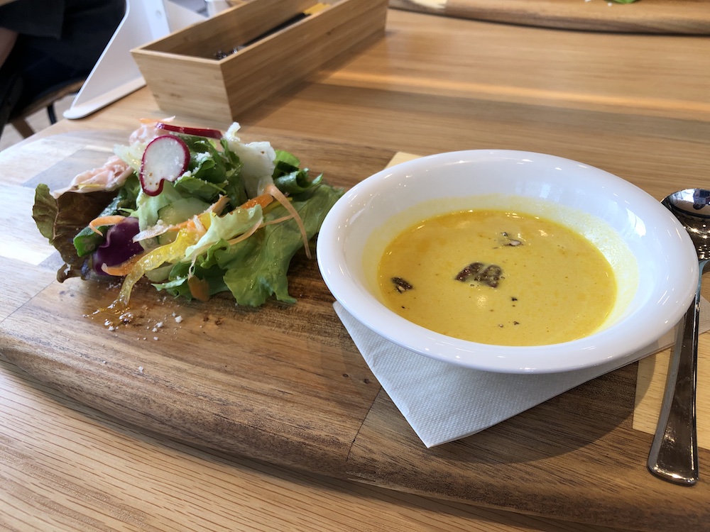 ランチはサラダとスープ、ドリンクが付いていて、+300円にするとドルチェセットが付きます。